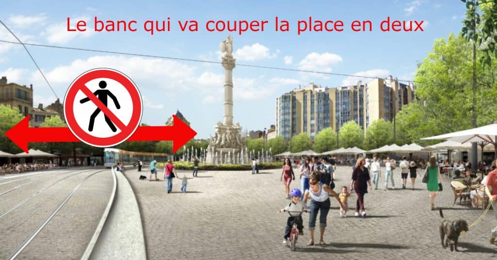 Nous ne voulons pas de ce banc qui coupe la place en 2 et va nous obliger tous à le contourner tous les jours.