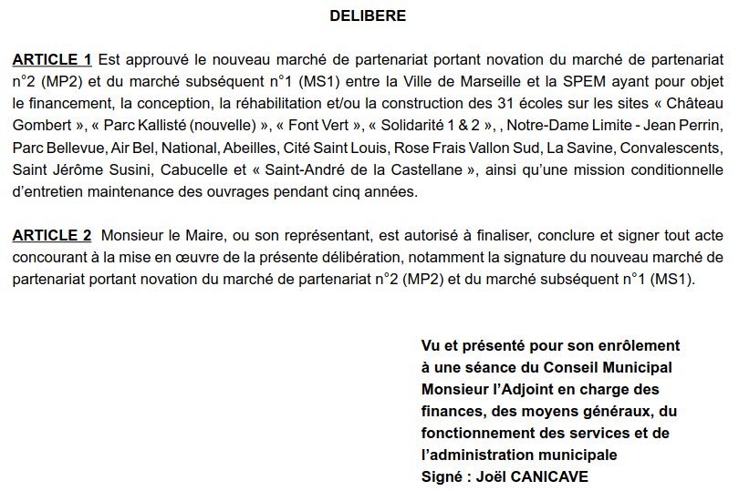 Parce que derrière les artifices juridiques et financiers, ce sont les enfants marseillais, leurs familles et l’école publique qui subissent et subiront les retards, les surcoûts et les renoncements.