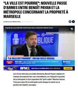 Mr Payan, le maire a retoqué une fois encore le mauvais service de nettoyage ( Vidéo BFM ci-dessous) de notre ville réalisé par la Métropole dirigée par Martine Vassal, c’est gentil, c’est politiquement correct, mais il y a péril à Marseille et il ne faut pas attendre que les Marseillais s’énervent ou deviennent fous.