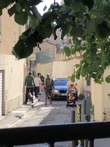 De nombreux parents emmènent et ramène leurs enfants à la maternelle à pied, et se retrouvent en file sur les trottoirs, pour laisser passer les véhiculent des parents qui déposent leurs enfants en voitures, sans compter les usagers des garages qui partent au travail.