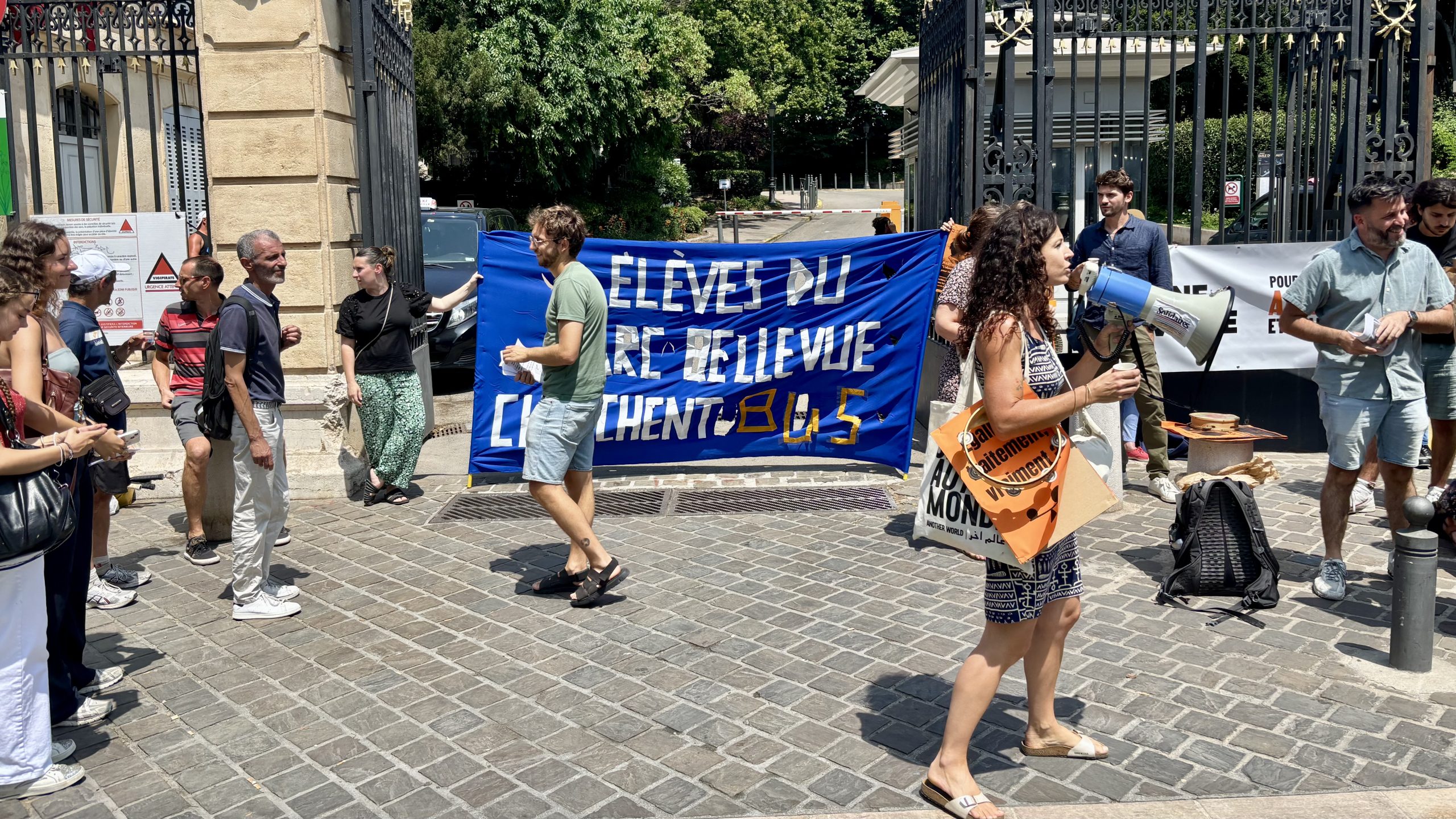 Ils sont montés jusqu’au Pharo pour planter leur banderole sur les grilles du siège de la métropole. Ce jeudi 26 juin après-midi, les parents d’élèves et enseignants de l’école du parc Bellevue (3e) interpelaient les élus métropolitains. Depuis plusieurs mois, ils demandent à être entendus par l’institution qui gère les transports en commun à Marseille. À la rentrée 2025, les centaines d’élèves de la maternelle et du primaire doivent quitter leur établissement au pied du bâtiment pour rejoindre une école tiroir, rue Loubon, à plus d’un kilomètre de la cité, soit trente minutes de marche.
