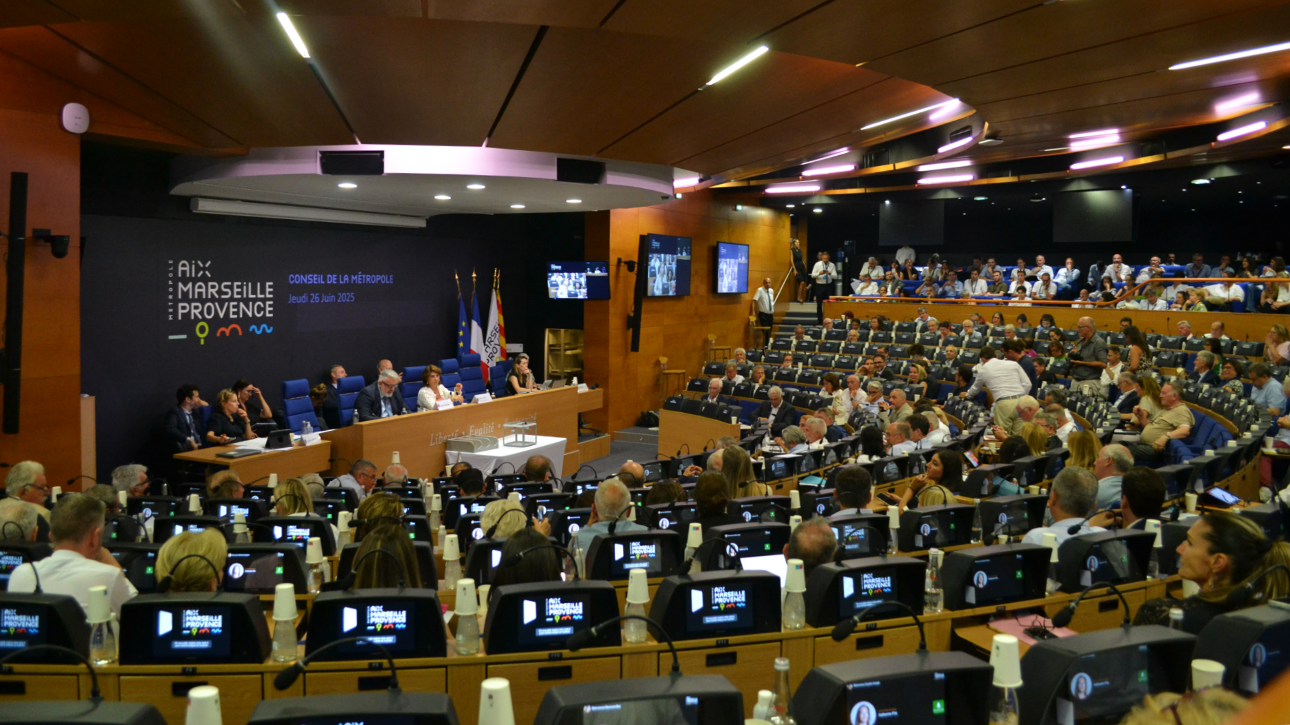 C’est le conseiller métropolitain Jean-Baptiste Rivoallan (UDR, allié du RN) qui a souligné le fait que le conseil métropolitain n’avait plus le quorum. Au début, Martine Vassal ne l’a pas écouté et a continué à faire voter des délibérations en demandant aux élus sortis de revenir à leur place. Mais le couperet est tombé quelques minutes plus tard, quand les services sont venus lui confirmer qu’il n’y avait plus assez de conseillers métropolitains dans la salle. La présidente reconvoque donc une séance lundi 30 juin à 8 h 30 pour terminer l’ordre du jour. Les élus ont toutefois eu le temps ce jeudi 26 juin de voter les modalités de la gratuité partielle — pour les moins de dix ans et les plus de soixante-cinq ans — dans les transports en commun à partir du 1er septembre.