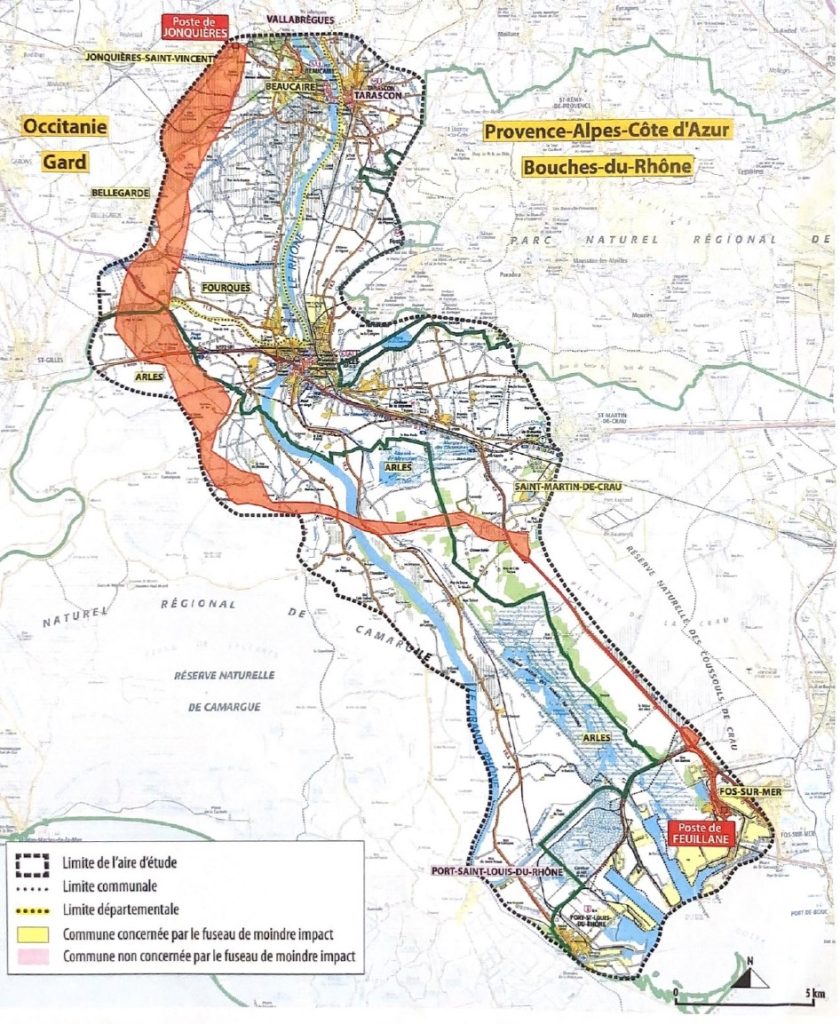 Vendredi 27 septembre 2024, une troisième réunion de concertation au sujet du projet de ligne à haute tension entre le Gard et Fos-sur-Mer s’est tenue en préfecture. Le préfet de région, Christophe Mirmand, le préfet du Gard, Jérôme Bonnet, et deux représentants de RTE, le gestionnaire du réseau de transport d’électricité, ont présenté le tracé que pourrait prendre cette ligne électrique de 400 000 watts, destinée à alimenter les activités industrielles du bassin de Fos. Elle resterait à l’ouest du Rhône entre Jonquières-Saint-Vincent et Arles, puis passerait à l’est du fleuve, jusqu’à son terme.