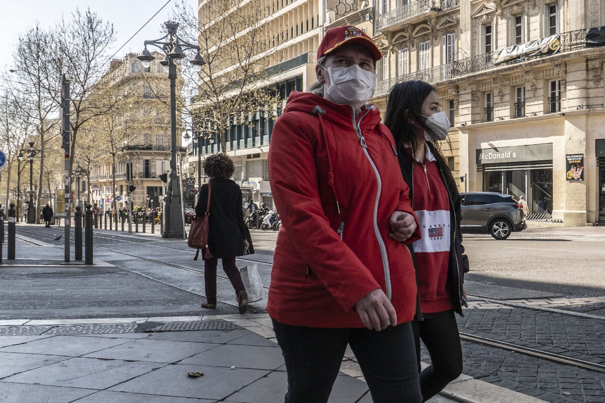 - Premier jour du confinement, premiers masques photographiés sur la Canebière. Photo Emilio Guzman.