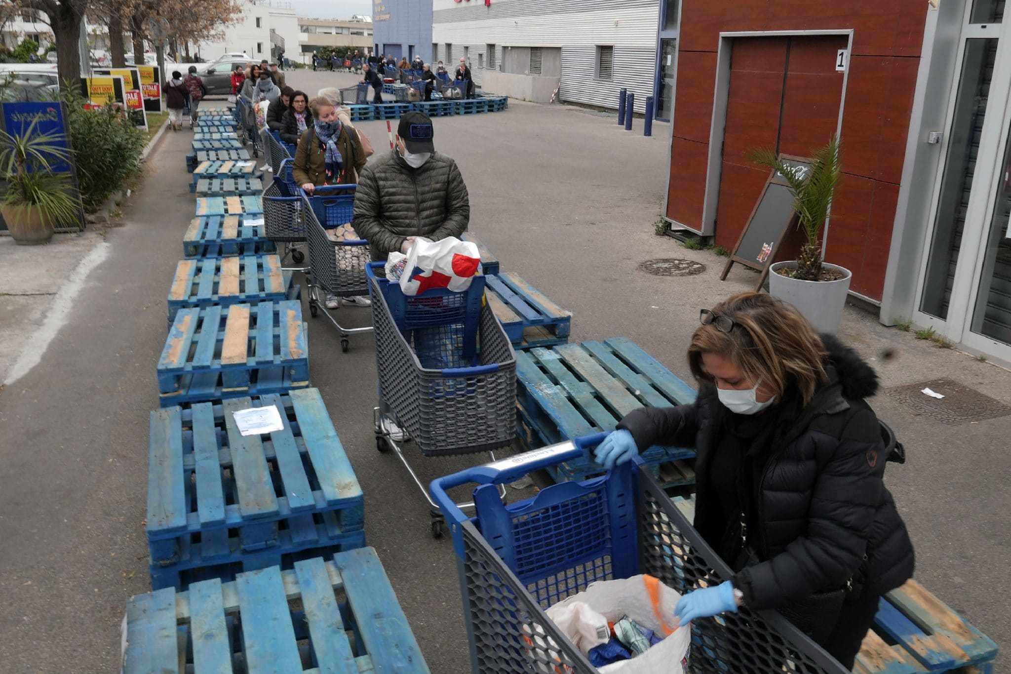 - Dans les supermarchés, comme ici au Leclerc Sormiou, les files d’attentes s’allongent et des pénuries naissent. Photo Emilio Guzman.