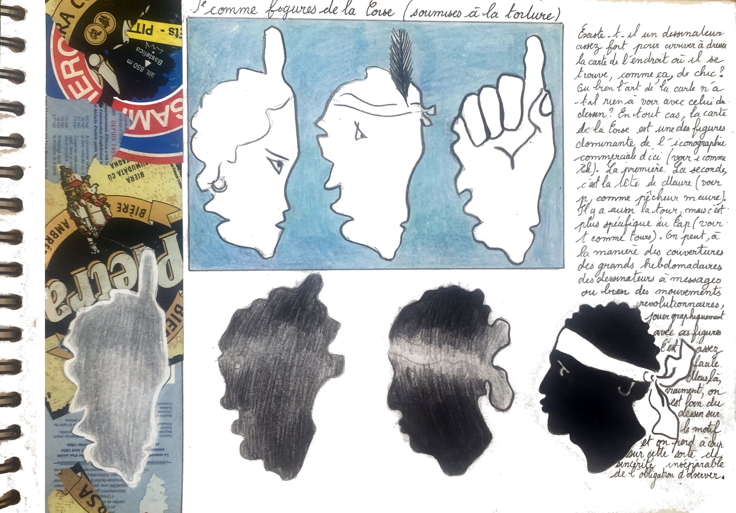 Il avait donc utilisé à plusieurs reprises le blason anthropomorphe dans ses productions artistiques. On le trouvait dans l’impeccable copie des Rois mages de Dürer où il avait avec grand soin remplacé la tête de Gaspard par celle de son fétiche (exposition : Héritages de la Renaissance, Louvre Lens), dans l’immense sérigraphie intitulée Hommage de l’île de Corse à Andy Warhol où les impressions du Maure en différentes couleurs alternaient avec les Marylin et les Mao du maître (Pop art etc., Mamac de Nice), dans la série Métamorphose d’une île (L’invention des îles, Musée National de la Marine, Brest).
