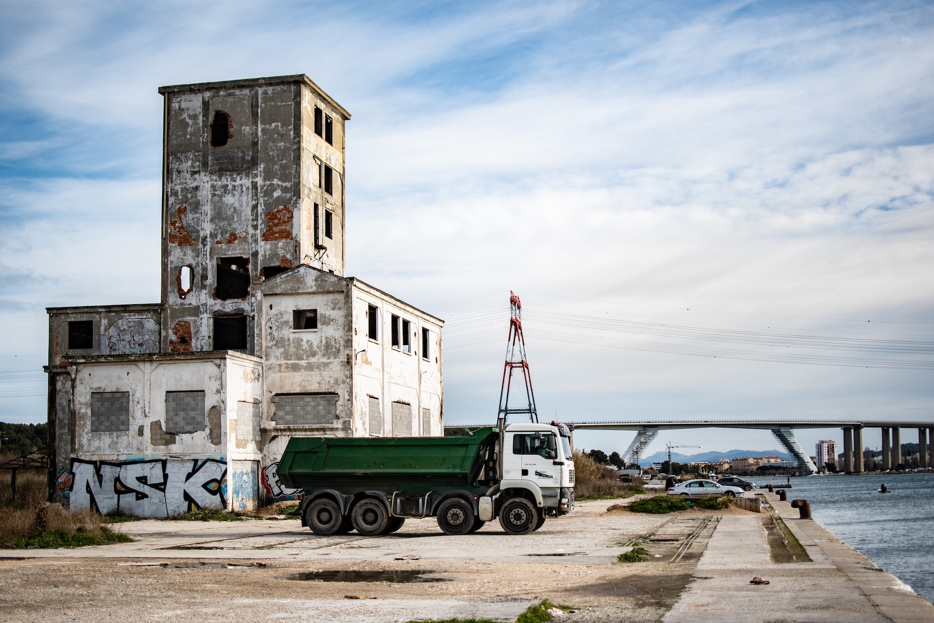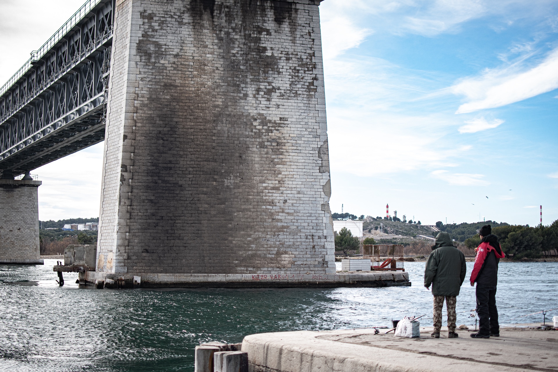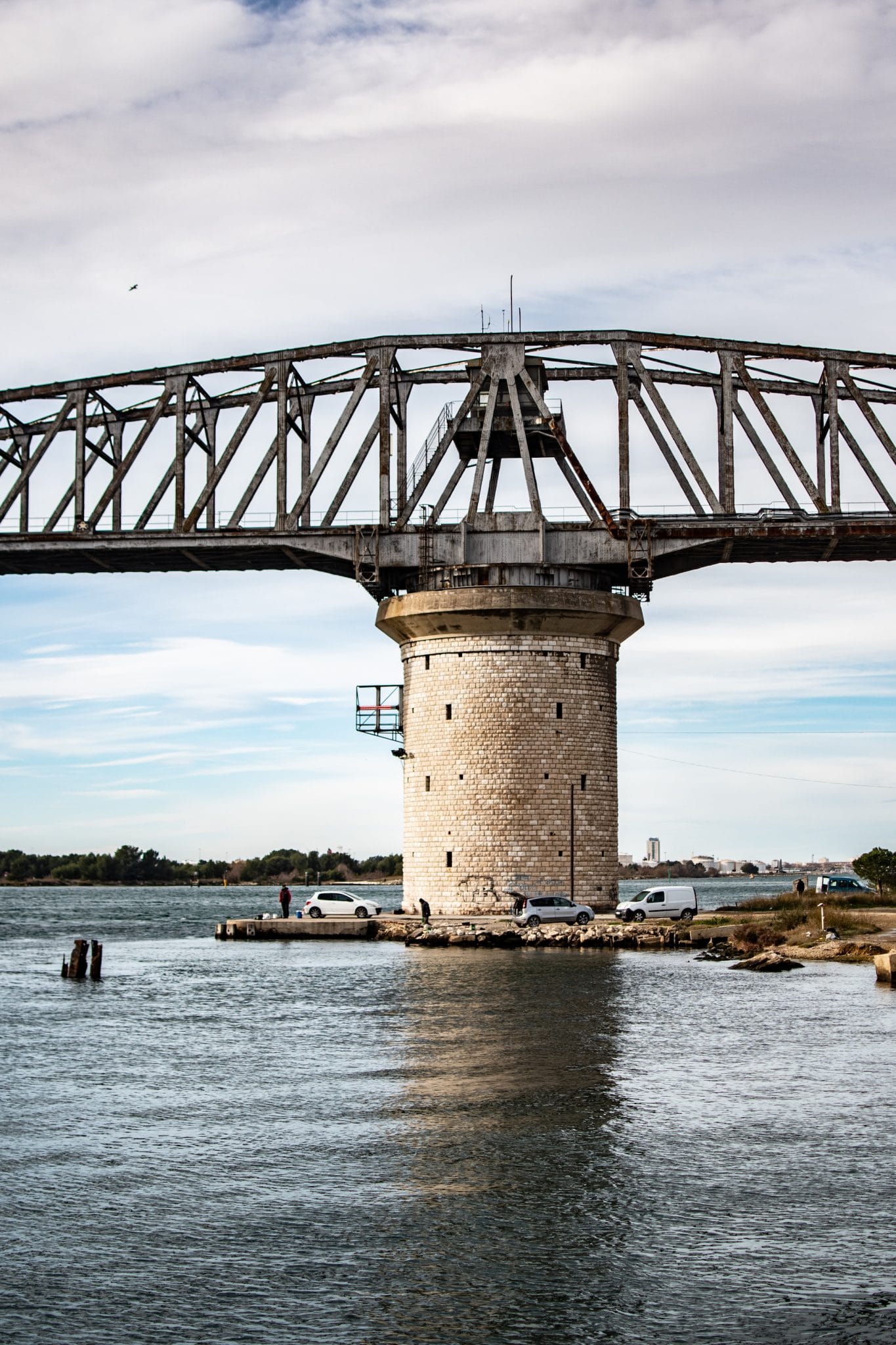 Le pont de Caronte se trouve sur la commune de Martigues. Il chevauche le canal du même nom, le train passe dessus et quand un gros bateau veut passer à son tour, le pont tourne et le laisse passer. C’est un pont particulier qui se dresse dans un lieu qui parait abandonné, au milieu des usines pétrochimiques, industrielles, au milieu des terrains vagues délaissés, des ordures… et des pêcheurs.