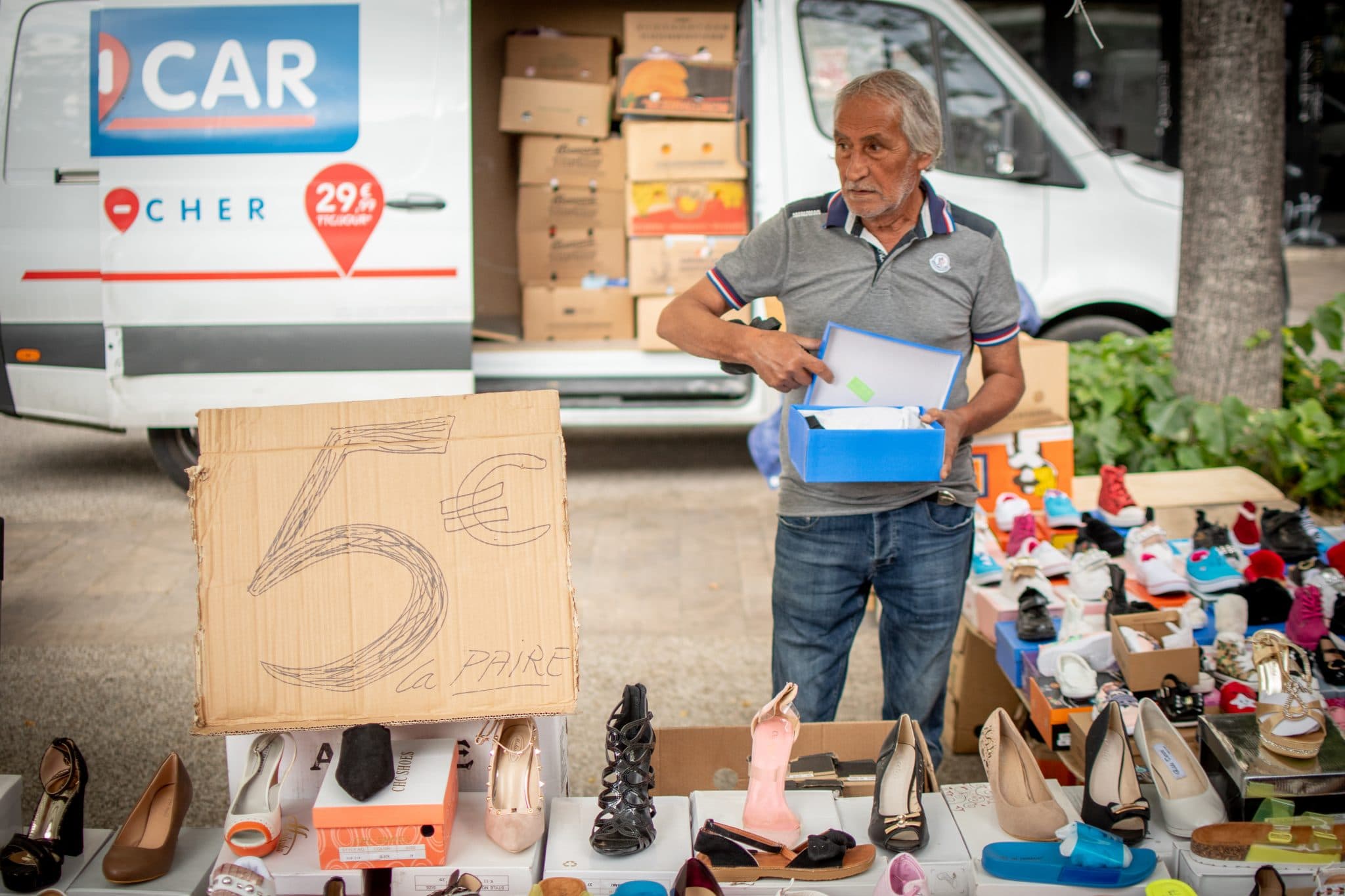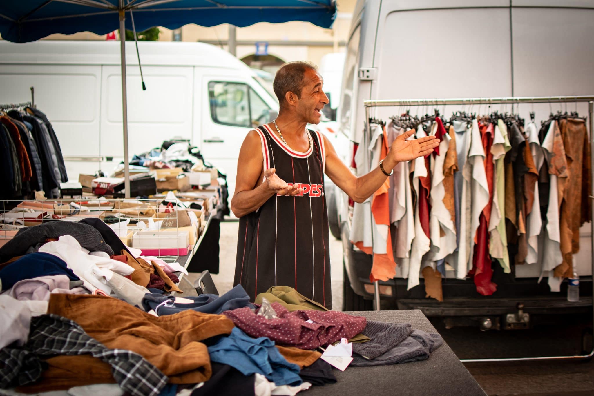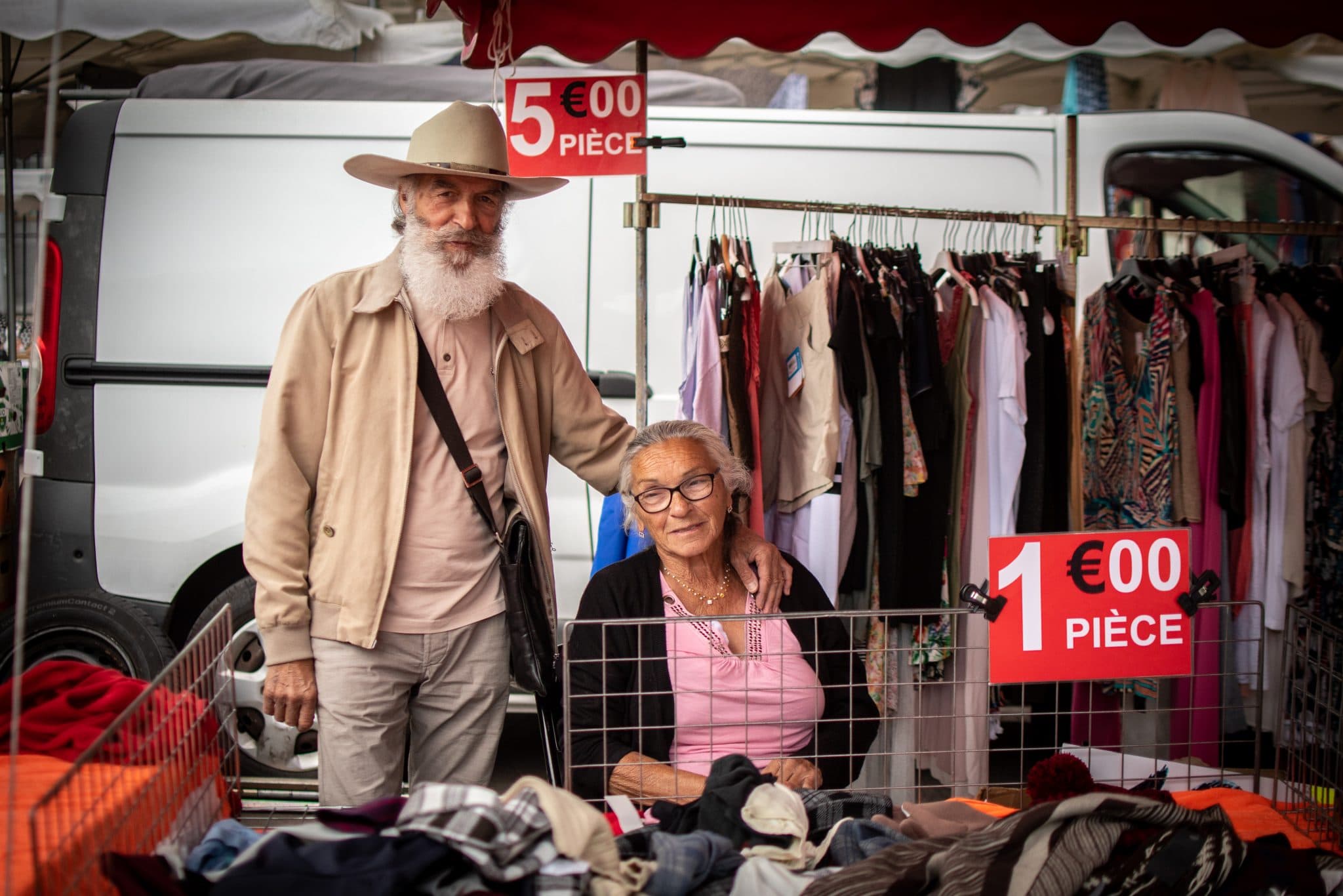 On parle des liens qui nous tiennent parce qu’ici ça fait longtemps qu’on a sa place, parfois les parents y étaient déjà. Aujourd’hui, il y a de nouvelles règles qui obligent à faire moins voler de cartons et de plastiques, moins de métrage pour chaque stand, un peu moins de forains. Pour autant, le marché a bel et bien repris.
