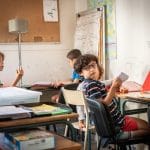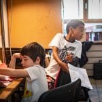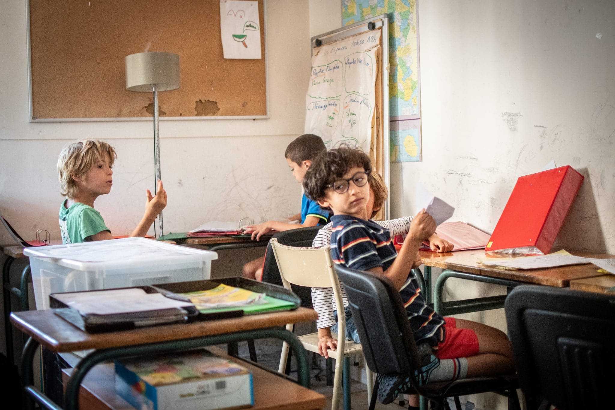 Chez les Bricabracs, quelque part dans les quartiers Nord, on a beau chercher dans leur projet, nulle part on ne parle d’école. On dit “espace éducatif et social”. 25 enfants dans une classe unique, deux enseignants éducateurs, Erwan et Charles, et des bénévoles animent ensemble un lieu qui, dans leur souhait, abolit les frontières entre le scolaire et le périscolaire, l’enseignement et le loisir, sous la forme administrative d’une école hors contrat.