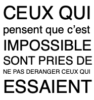 “Mes projets évoluent avec le temps… Très récemment, je fais des dessins et des conférences scientifiques burlesques : une information scientifique véritable conduit à une réalisation complètement absurde.” On passe du raisonnement au sensible, du rationnel au poétique, comme avec la Machine à trier les mythes et les idées toutes faites, ou la Machine à pulvériser les mythes. La machine est concrète, mais il n’y a que son dessin — et le discours qui l’accompagne… Il y aura prochainement une conférence à la Cité.