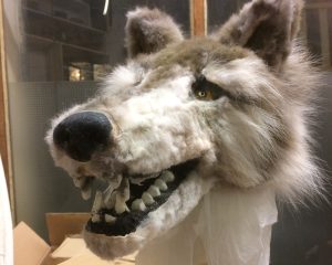 Loup réalisé par Virginie Breger, pour le spectacle “Forêts paisibles”, mise en scène de Martine Wijckaert en 2020. (Photo : Malika Moine)