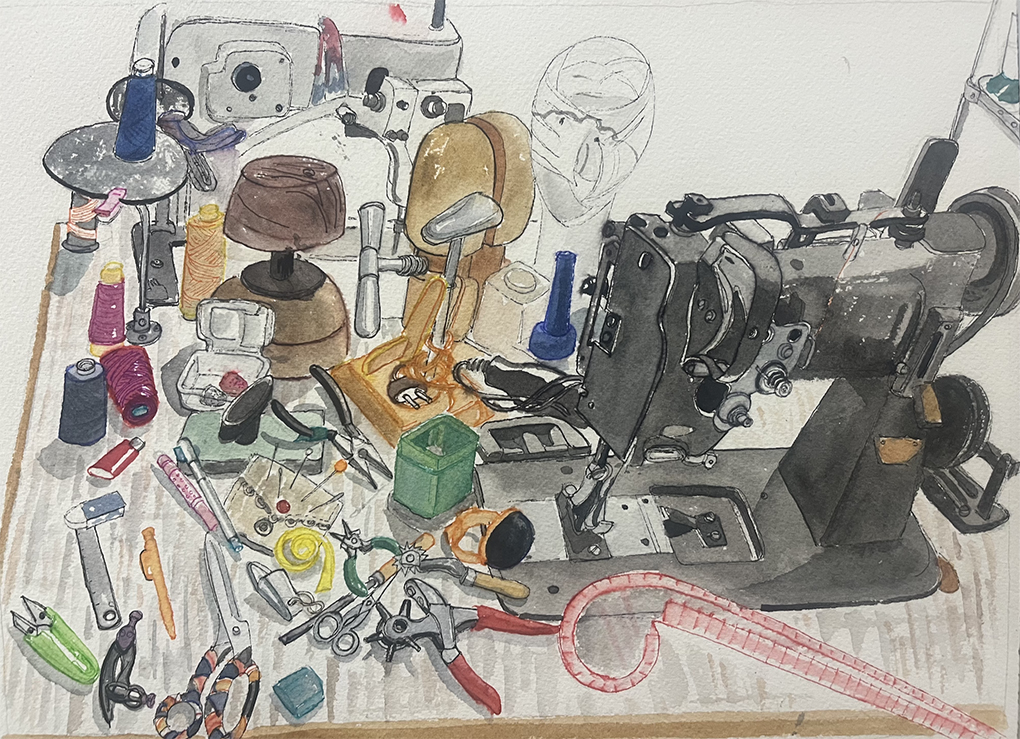 Les outils de la costumière Virginie Breger, dans son atelier. (Illustration : Malika Moine)
