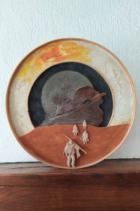 Comme à chaque fois que je me trouve dans un petit atelier, je me questionne sur le rapport entre sa taille et celles des œuvres. “Pour les rondes-bosses, ça peut aller, mais dans les tableaux, les bas-reliefs, il faut donner l’illusion des trois dimensions, je réalise des plus petits formats que lorsque je travaillais dans la cuisine d’été. En plus, les petits tableaux sont plus faciles à placer dans une maison…”