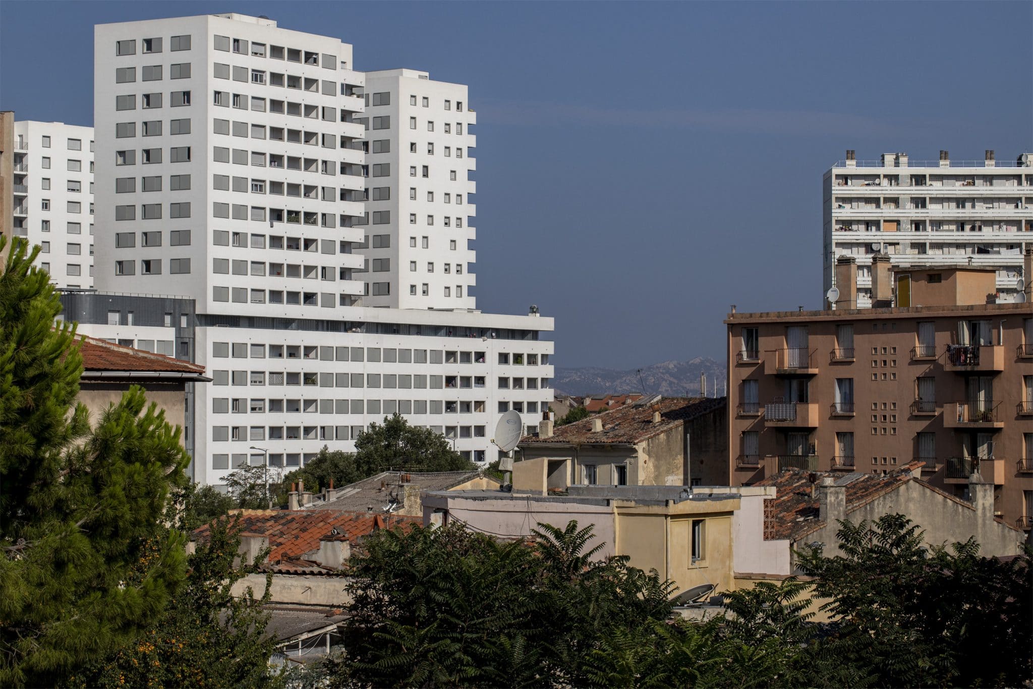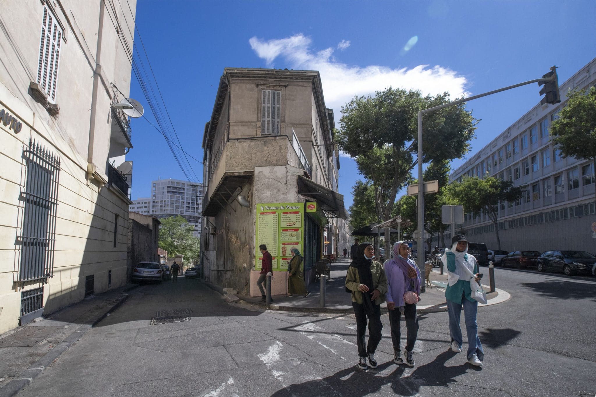 Le contraste est saisissant : d’un côté, les rues tortueuses d’un ancien faubourg ouvrier où les petites maisons s’étagent en balcons depuis la colline Bellevue. De l’autre, l’horizon se barre de tours blanches éclatantes. Il y a celles anciennes du parc Bellevue, 143 rue Félix-Pyat et celles toutes neuves des Docks libres qui lui font face. Au pied des tours comme au creux du village, les habitants vivent l’été entre la lumière écrasante et l’ombre salutaire, ici, à Saint-Mauront.