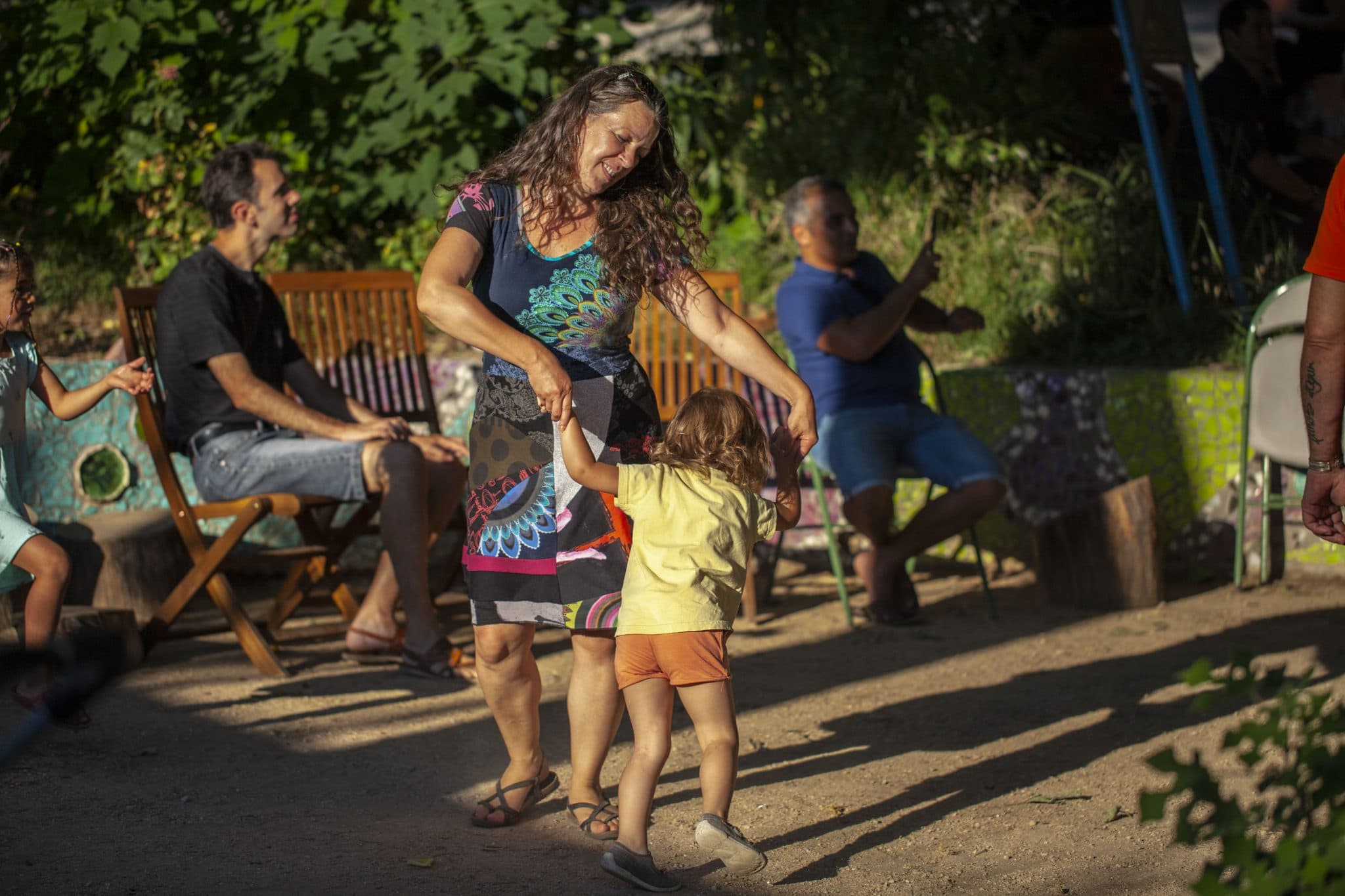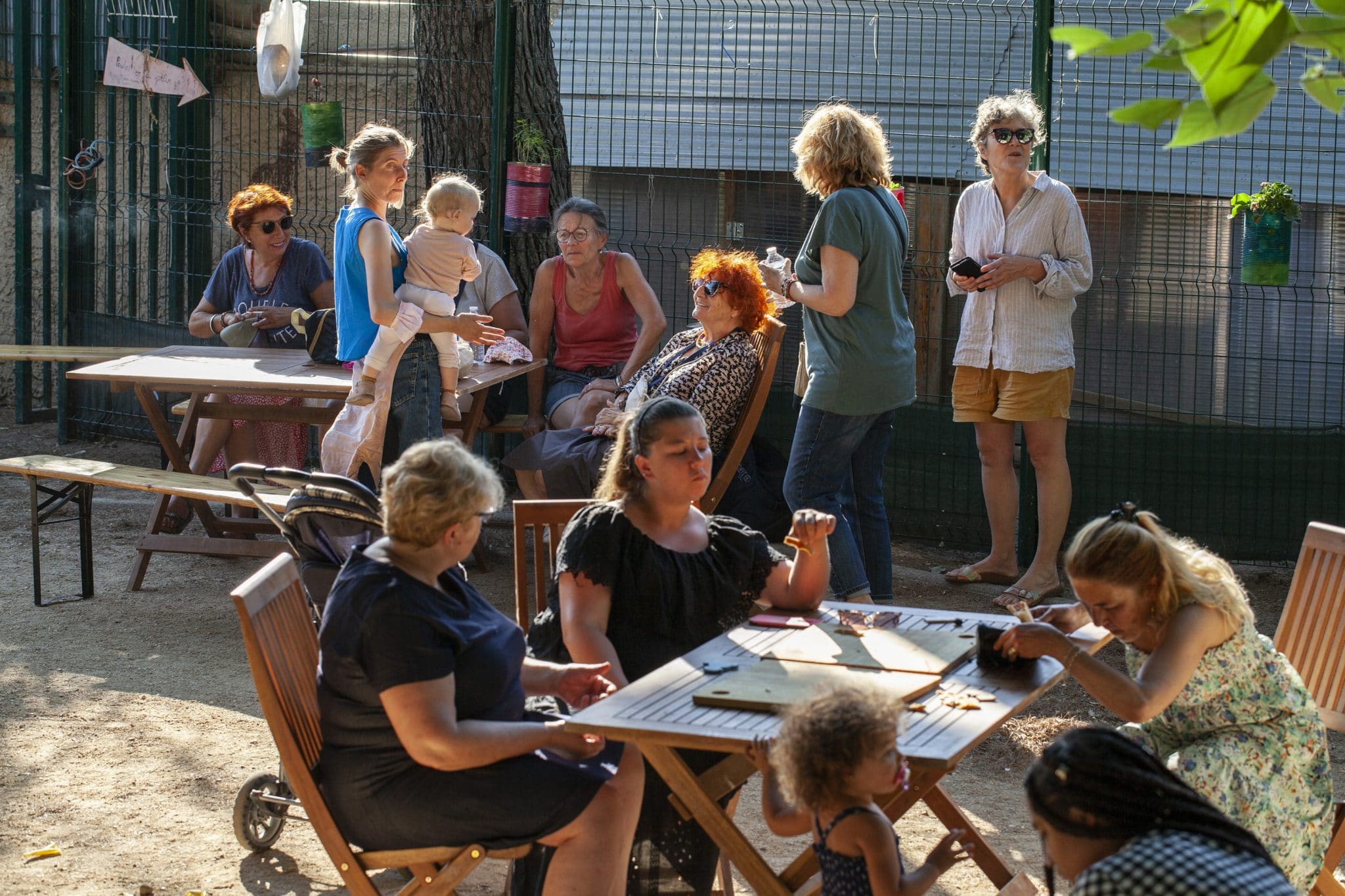 - Anciennes et plus jeunes, tout le monde se retrouve à l’ombre des grands arbres. Photo : E.G.