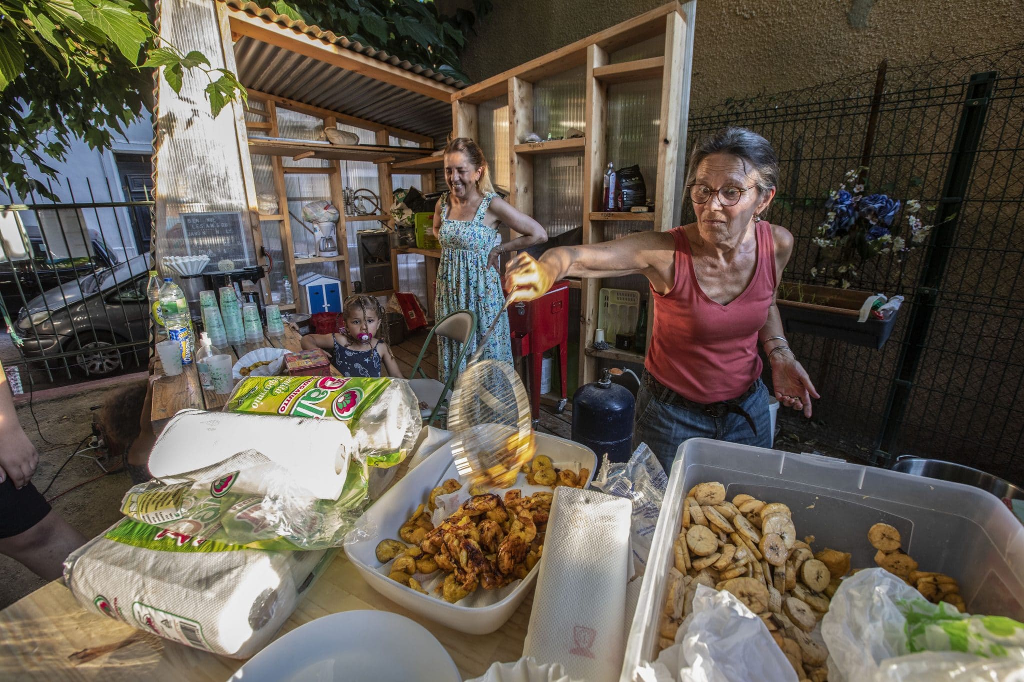 - Préparation du repas pris en commun au jardin Spinelly. Photo: E.G.