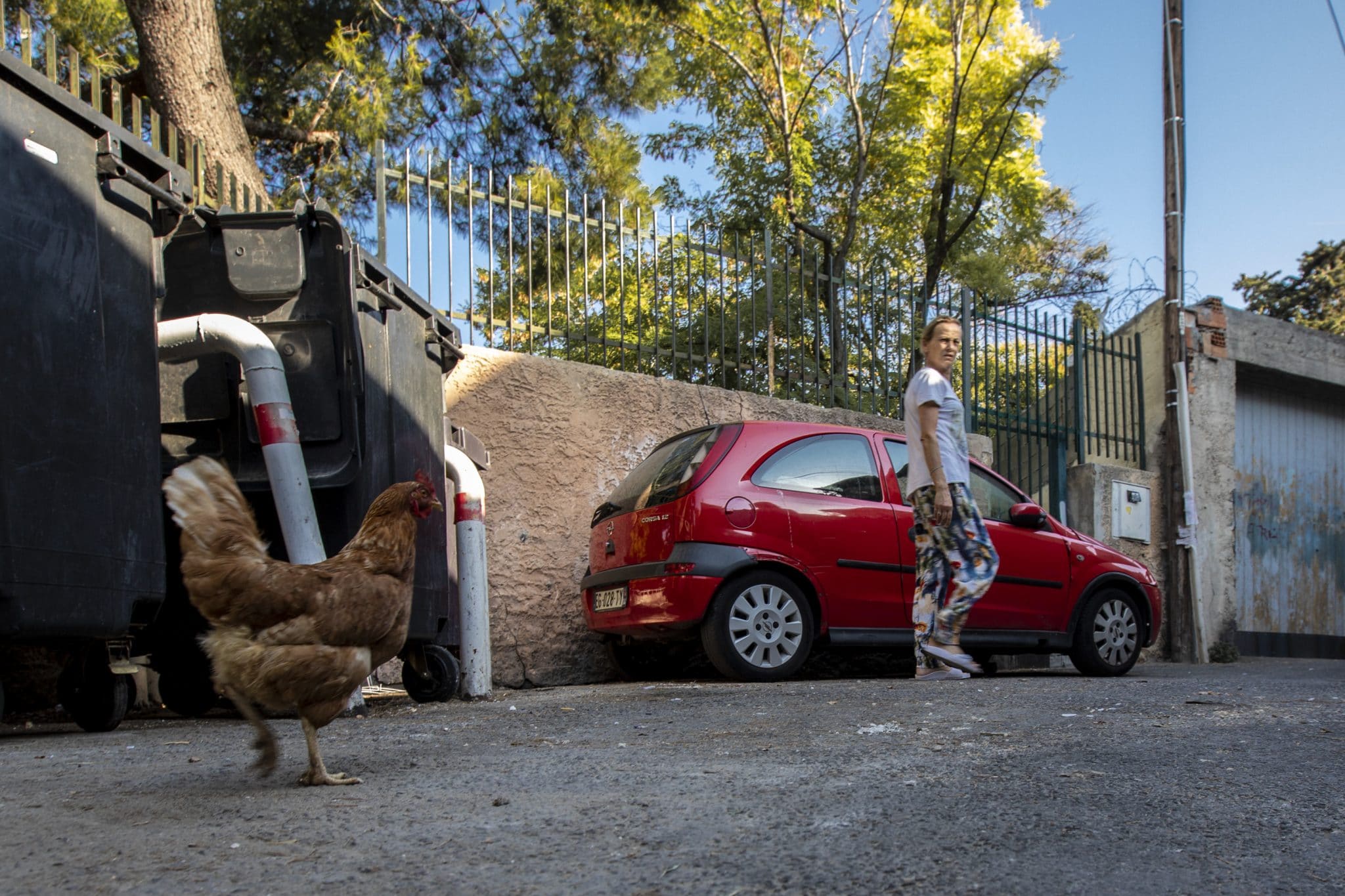 - Les poules montent la garde au pied de la butte Bellevue. Photo : E.G.