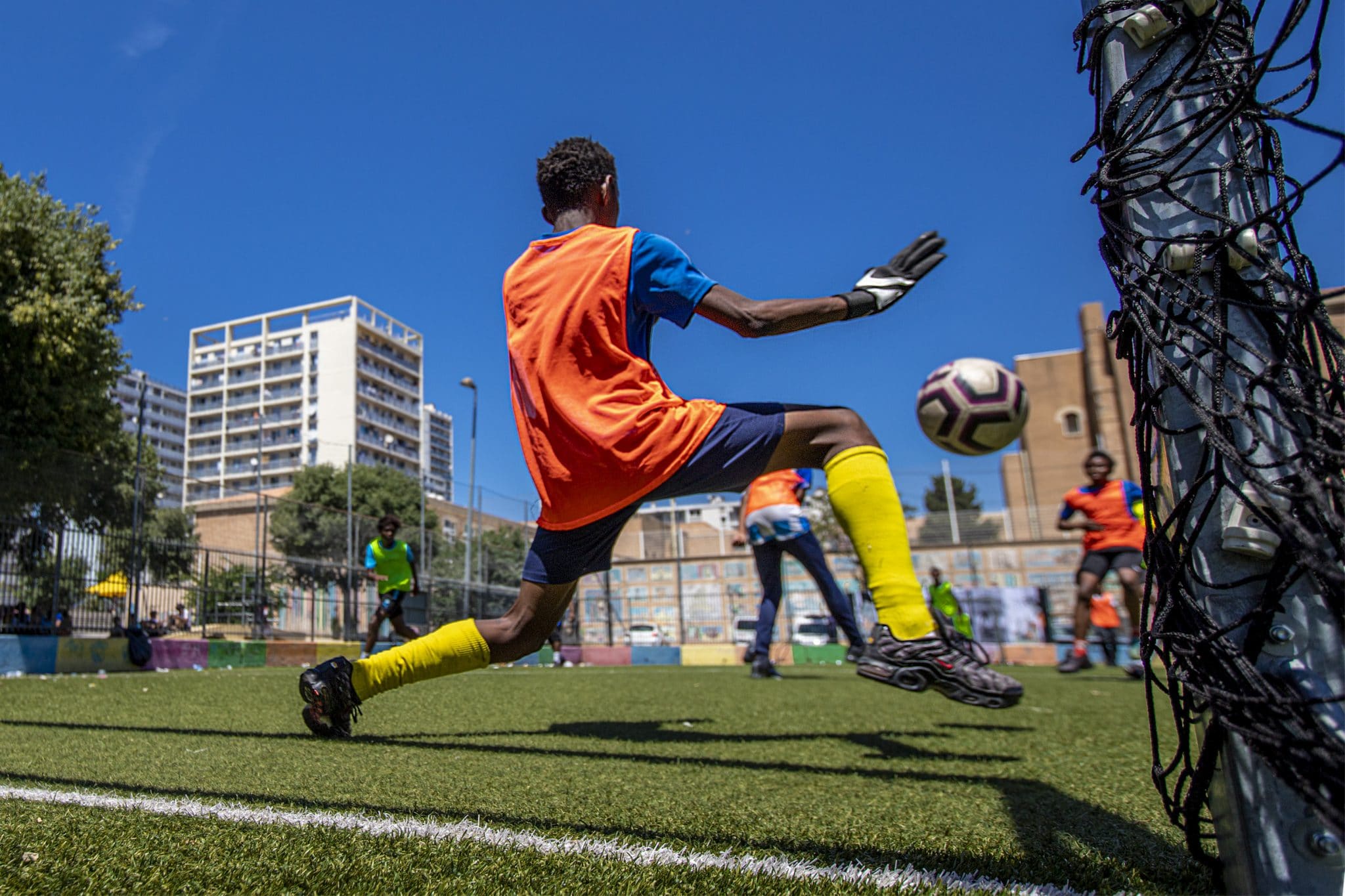 - Sur le nouveau stade de foot, une partie endiablée en plein cagnard dans le cadre du tournoi des légendes organisée par l’association LG Dream. Photo : E.G.