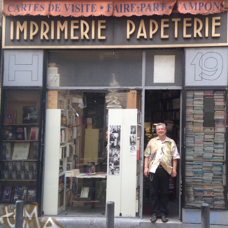 Imprimerie : Ceci n’est ni une imprimerie ni une papeterie. C’étaient les deux mais c’est désormais l’antre du cher Christian Estèbe, au 19 de la rue des Bergers. Dans la place que veulent bien lui laisser les milliers de livres d’occasion qu’il propose aux chalands, ce grand connaisseur de littérature médite, entre deux pratiques, un nouveau récit. Car cet excellent libraire est aussi un excellent écrivain. Il vient justement de publier son dixième livre : Les cicatrices des larmes, aux éditions La part commune.