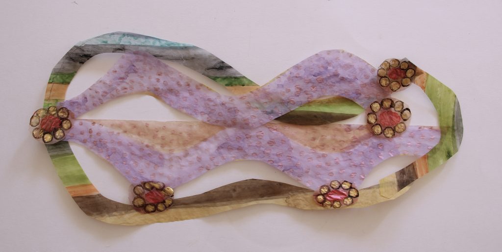 Ses outils sont d’abord ceux du peintre : les pinceaux pour l’aquarelle, de toutes les tailles, ont leur place dans la pièce à vivre. Ceux dédiés à la céramique, trônent dans la première pièce, celle du four. À leur côté, diverses spatules. Rangés sur une vaste étagère, les nombreux émaux. “L’indispensable fil à couper la terre“, les planches pour poser les pièces sur le tour. Et le four, bien sûr… De retour dans la pièce à vivre et à créer, Marie me montre ses sculptures en calque aquarellé. L’improbable – pour moi – calque donc…