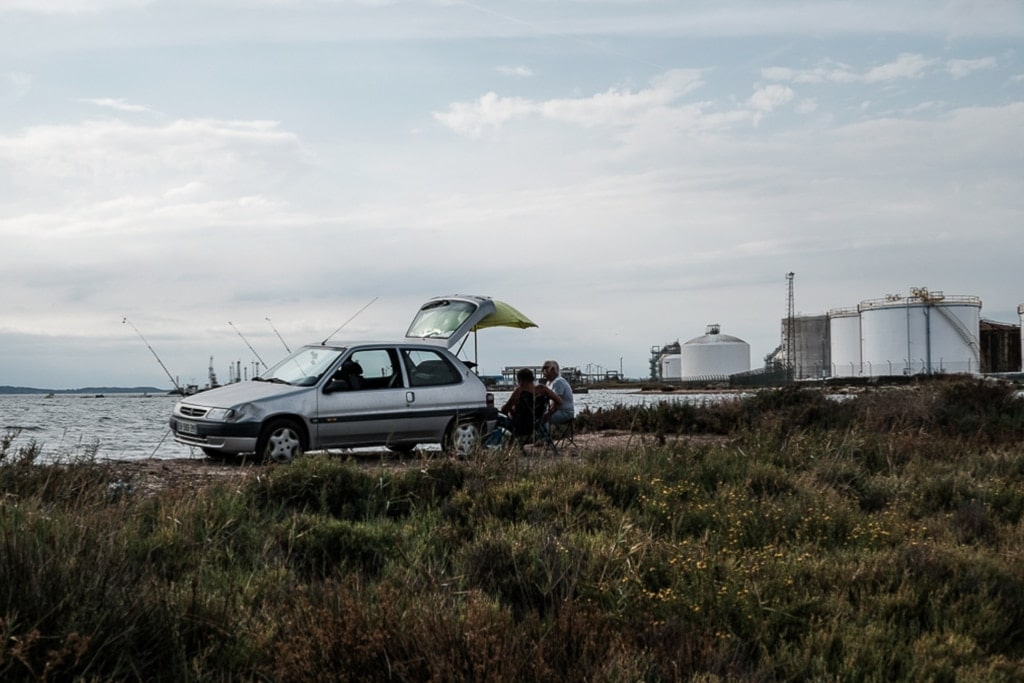 Autre avantage de la photo de pêcheur : la discussion. Toujours prompt à faire deux choses à la fois, le pêcheur aime aussi parler, voire philosopher. Ça philosophe souvent sur la météo, outil inégalé pour faire lien entre humains. On convient ensemble que pêche et photographie ont de nombreux points communs. Sans forcément se les détailler mutuellement. Nul besoin de mots pour se dire ce qu’on vient chercher ici. Chacun sait, que l’autre sait.