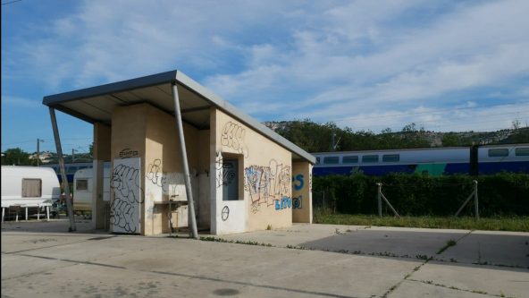 Difficile d’imaginer pire emplacement pour un lieu de vie. L’aire d’accueil des gens du voyage de Saint-Menet (11e arrondissement) est ceinturée par l’usine Arkema classée Seveso, l’autoroute A50, une voie ferrée et un terrain de moto-cross installé là par la mairie de secteur pour empêcher l’installation de caravanes supplémentaires. Alors que la métropole Aix-Marseille-Provence doit toujours créer des centaines de places pour rattraper son retard, celle-ci ne propose toujours que 24 emplacements (soit au maximum 48 caravanes), au nom des communes de Marseille, Allauch et Plan-de-Cuques. Depuis plusieurs années, Marsactu documente les problèmes rencontrés par les habitants de cette aire située à l’est de la ville. Malgré une fermeture de plus d’un an pour travaux et un changement de gestionnaire, rien ne change sur ce petit rectangle de goudron.