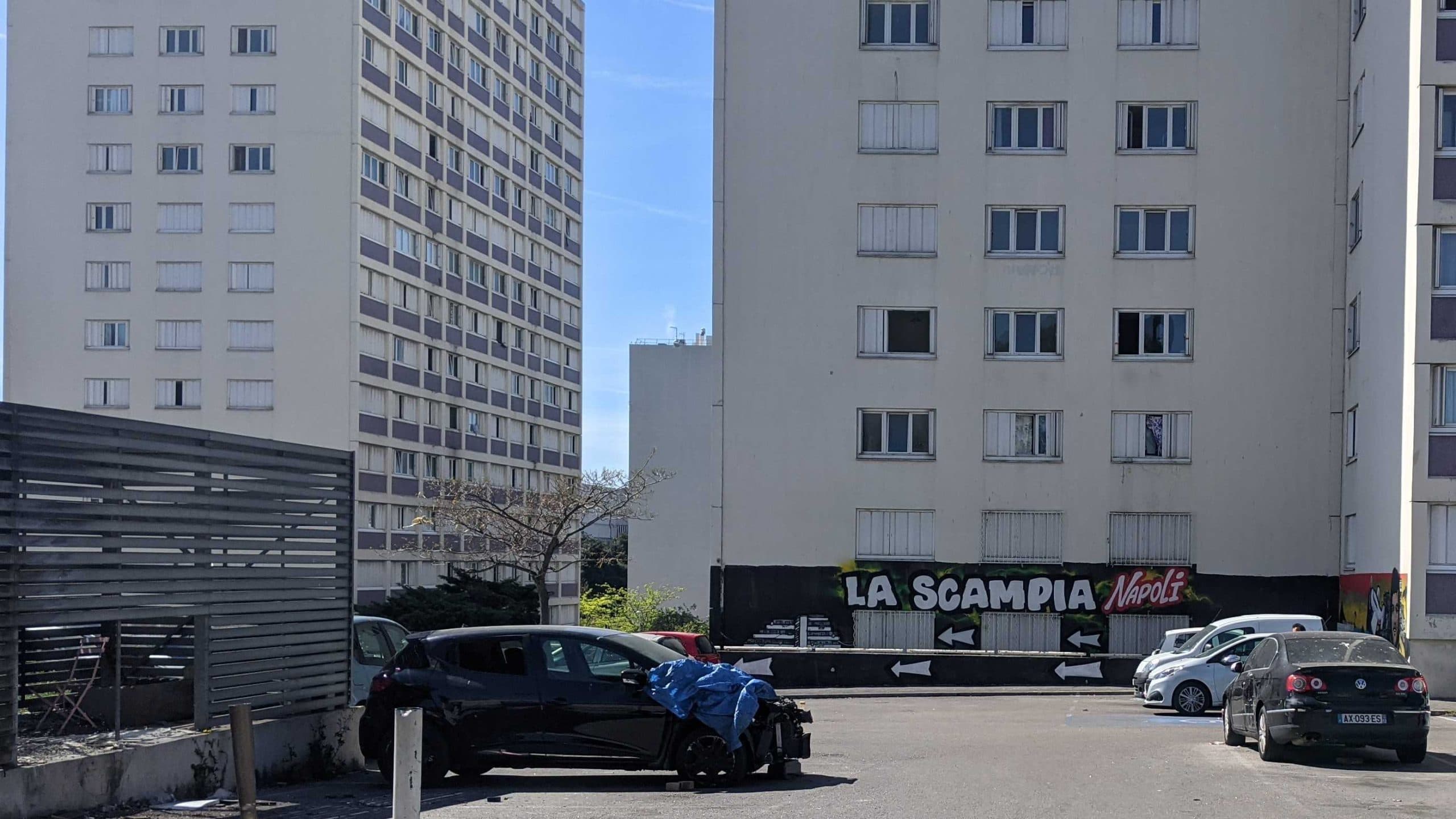 La copropriété dégradée du Mail, dans le 14e arrondissement, où un jeune de 19 ans a été abattu le 23 avril 2023. (Photo : CMB)